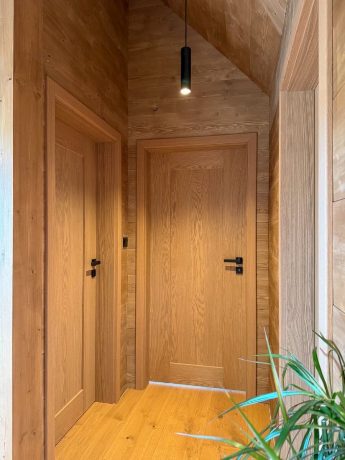 Zelený potok je nový apartmánový Hotel v srdci Pece pod Sněžkou. Bylo nám potěšením osadit do tohoto objektu dveře Elegant v dekoru CPL Dub sukatý doplněný černým kováním. Během této zakázky nás čekalo několik dveřních kompletů, které musely být precizně dopasovány do nestandardních dveřních otvorů propojujících starou a novou část budovy, s čímž si velice dobře poradili naši zkušení montážníci.